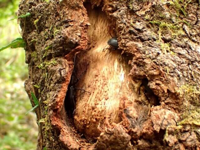 目視で確認出来るのは3頭のクワガタ。