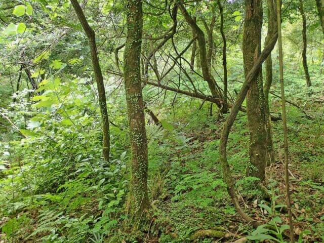 ここはクヌギとハルニレの混生地です。