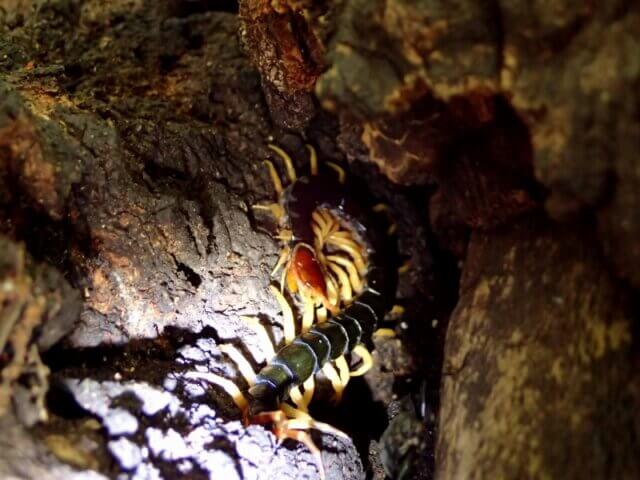 奥に隠れていた大型のムカデ。