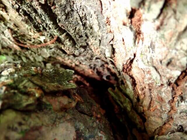 それらはほとんどが樹皮裏やウロ(洞)を住処にしておりますので、木を蹴る蹴り採集ではなく、樹皮裏やウロを覗き込んで探す採集方法で探していきます。