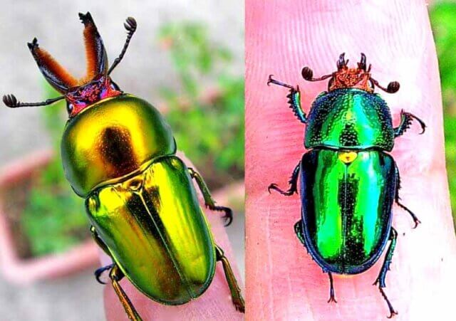 Lamprima属の一種、アウラタキンイロクワガタ。