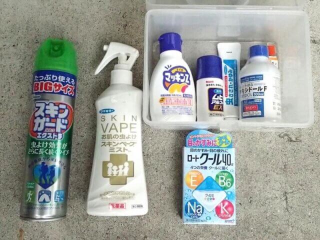 いくら完全防備をしているからといっても、やはり虫などに刺される場合があります。そんな時の為に私は以下のようなものを常備持っていくようにしております。