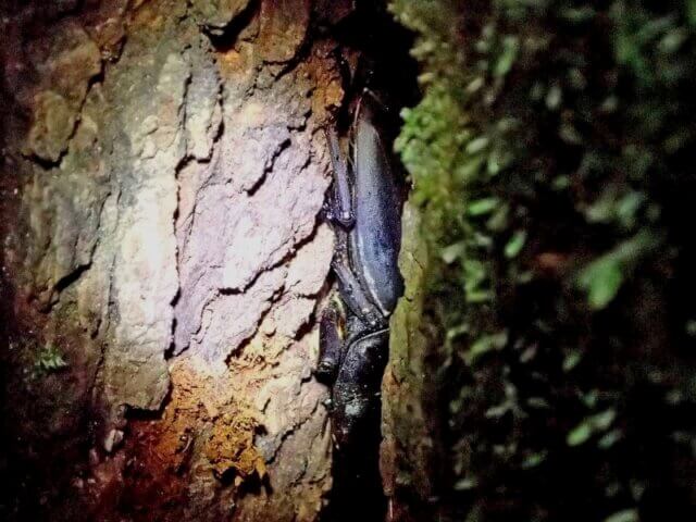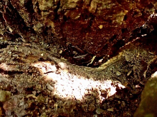 こちらの木の隙間にはヒラタクワガタ♂が潜んでいました。