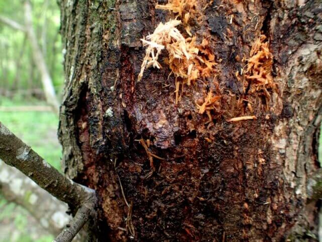 こちらのハルニレの木では、ツタとの隙間にヒラタの姿が。。