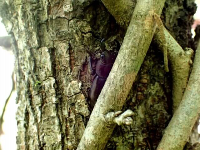 こちらのクヌギの木には、ヒラタ♀の姿を発見。