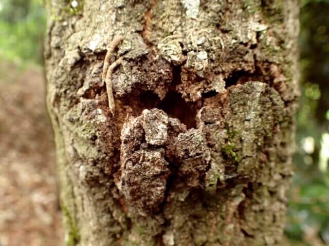 こちらのクヌギの樹皮裏には、