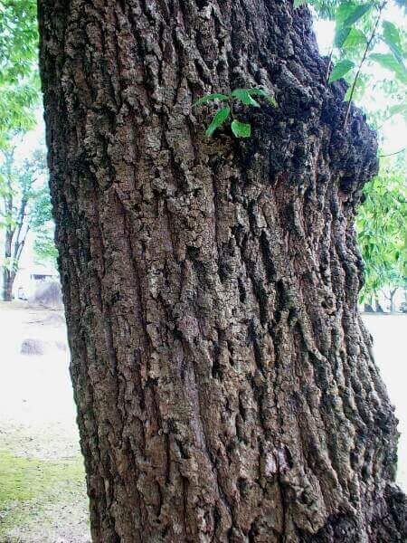 アベマキの木は良く見てみると確かにクヌギに良く似ていて、樹液が出ていればクワガタ達が集まって来そうな雰囲気をしています。樹皮はゴツゴツとして荒く、コルク層も厚そうです。手で押すと弾力があります。