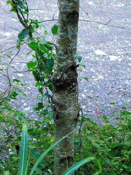 ヤシャブシは老木になると縦横に不規則な割れ目が入るそうですが、このヤシャブシの木はまだ若い為、その兆候が見られないようです。
