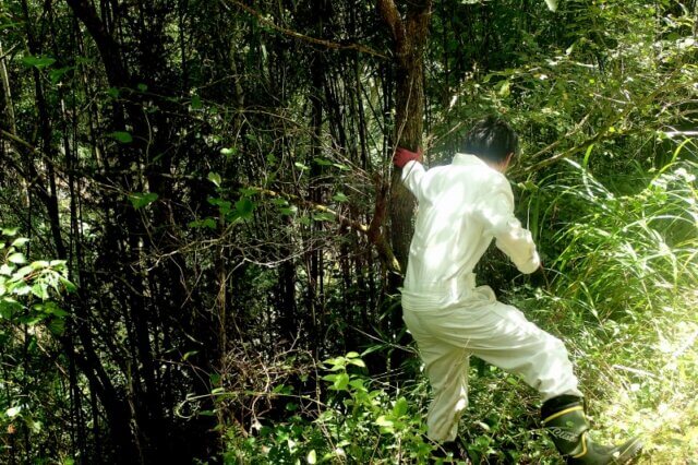スズメバチに注意しながら、軽く木を蹴ってみると、
