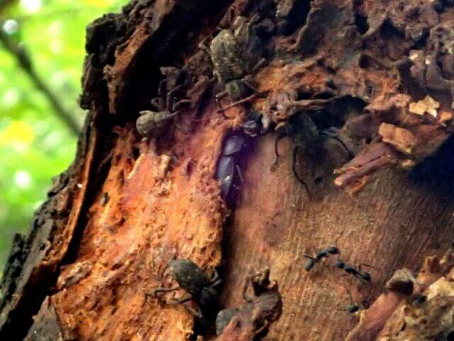 ハルニレにたかる大量のゾウムシと蟻、そしてクワガタの姿も見えます。