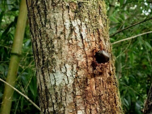 スジクワのお顔を拝見した後、この同じ木を叩いてみると、