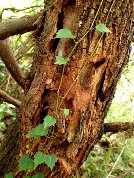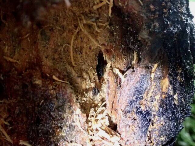 この木はそんなに太さはないのですが、至る所にウロや樹皮裏があります。