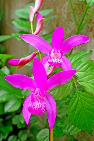 今我が家では紫蘭の花がとてもキレイに咲いています。