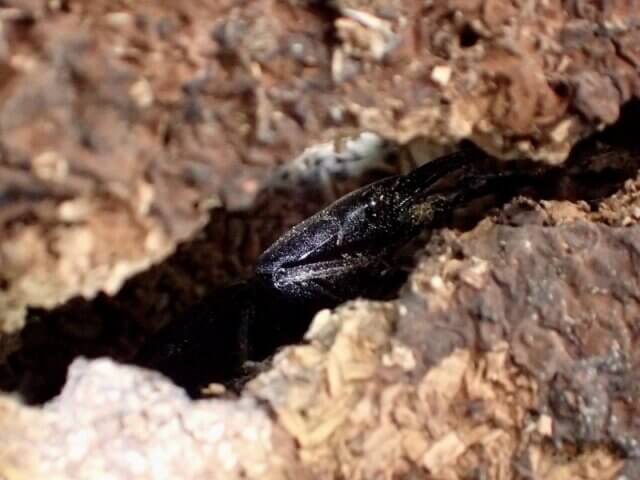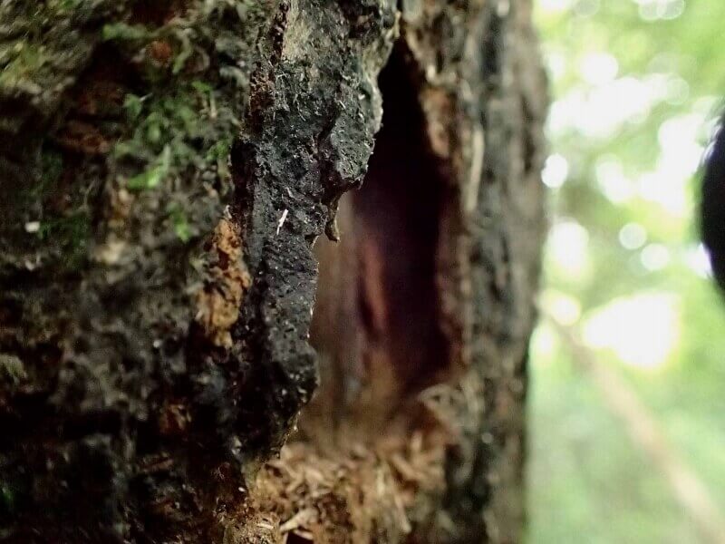 こちらはクヌギの樹皮裏に、またしても黒い影。
