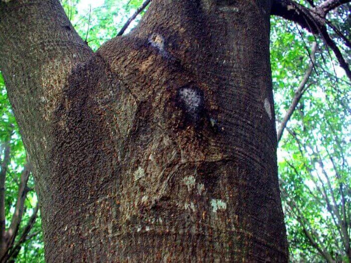 樹液がにじみ出ているシラカシの木