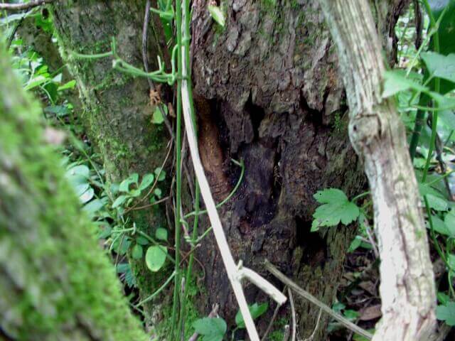 この割れている樹皮裏からは、