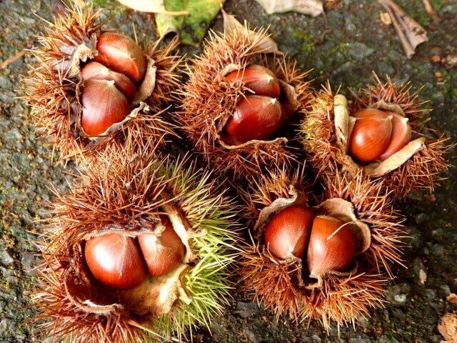 採集ポイントに向かう途中、秋の味覚の栗が沢山落ちていました。