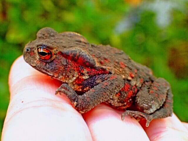 凄く可愛かったので、思わず手で触れてしまいましたが、ヒキガエルには毒があり、目の後ろにある辺りから白い毒液を出すそうです。