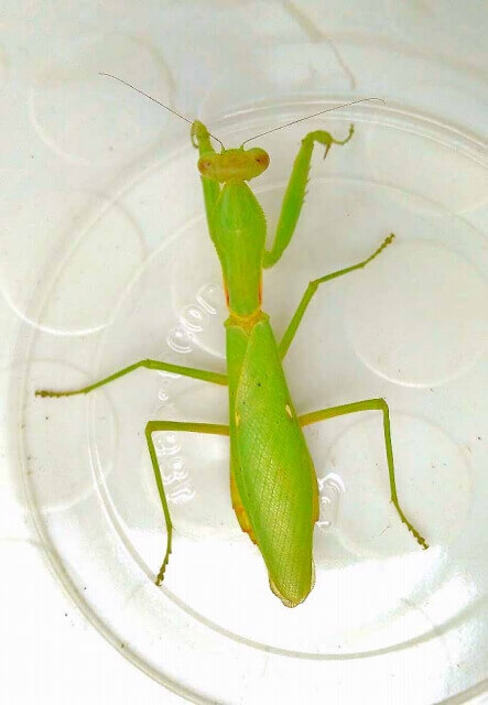 ハラビロカマキリには外来種であるムネアカハラビロカマキリというのがいるらしいですが、この個体は通常のハラビロカマキリでした(月虫:しょーた談)