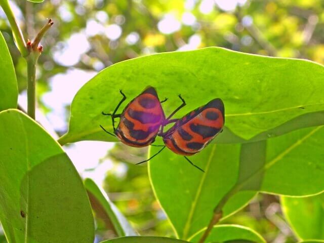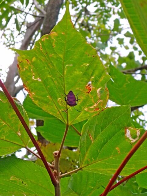 アカメガシワの葉の裏に赤色の昆虫を発見。