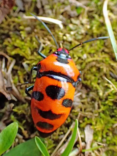 アカスジキンカメムシは冬は成虫個体は存在せず、幼虫で越冬するので、この時期に見られるのは幼虫のみらしいです(月虫:しょーた談)
