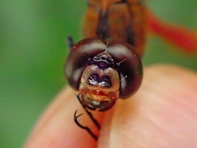 顔の中央に黒い眉(マユ)?みたいのがあるのが特徴のトンボです。