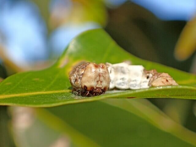 しかし、白い模様が鳥の糞に見えて、蝶や蛾の幼虫類にはこのような擬態のプロが多く見られますね。