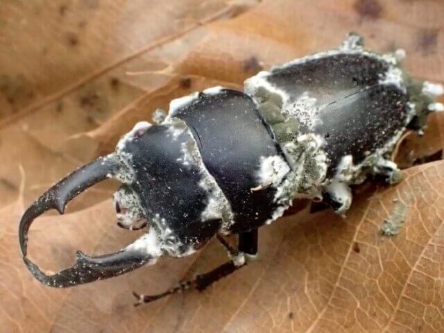 【参考例:ボーベリア菌に巻かれたコクワガタ♂】
