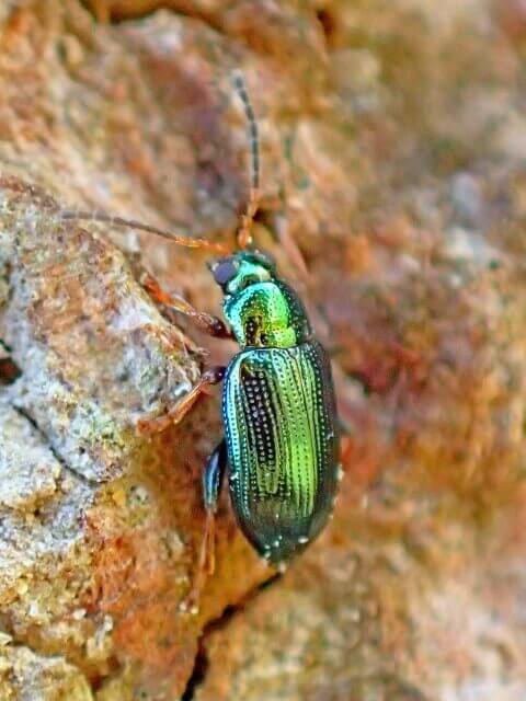 とっても小さいハムシ種ですが、撮影した画像をじっくりと拡大してみると、とてもキレイな体色をしています。