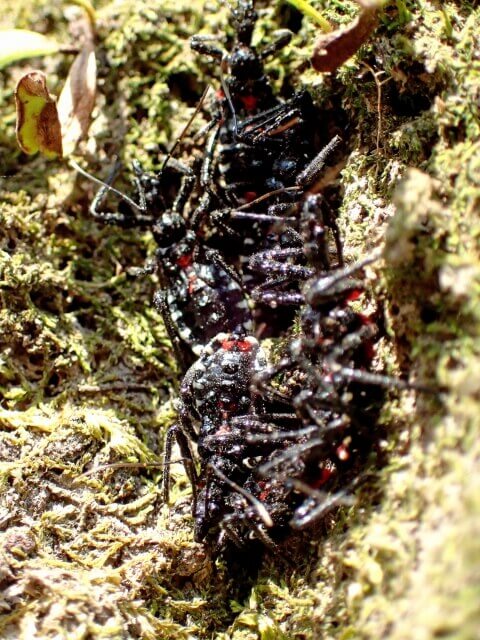 こちらではそのヨコヅナサシガメ幼虫が集団で固まっていました。