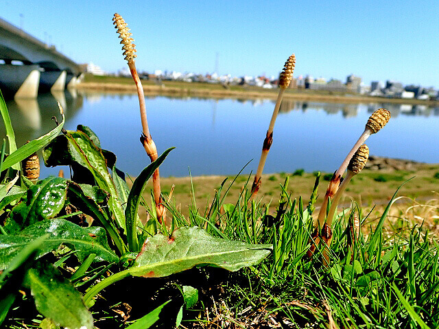堤防沿いを歩いてると、ツクシが出ているのを見つけました。