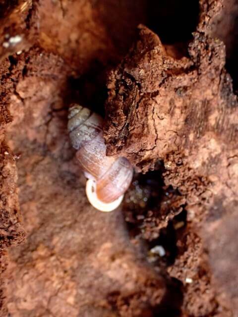 木の隙間で見つけたのは陸産貝類(カタツムリの仲間)