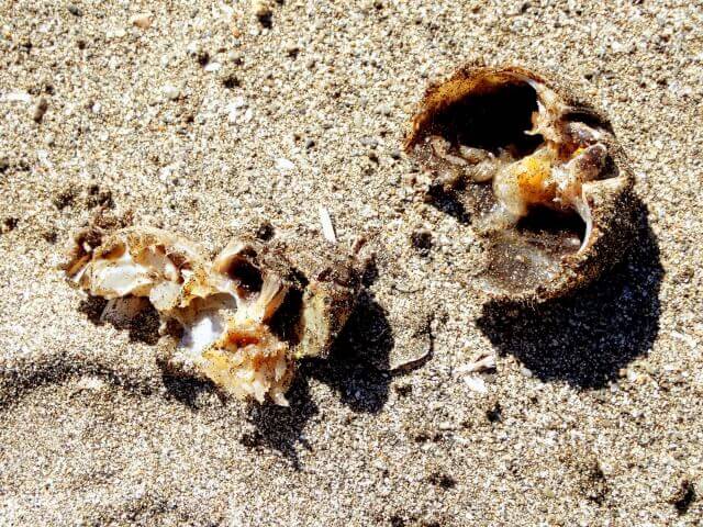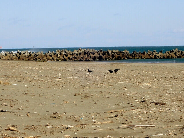 冬の寒空の中でもカラス達はエサを探して砂浜に来ています。