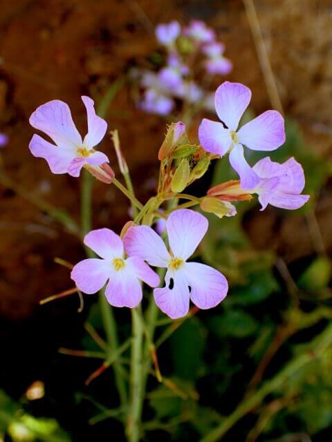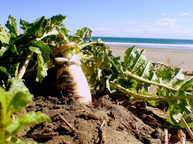 砂浜では、ハマダイコンの花がキレイに咲いていました。