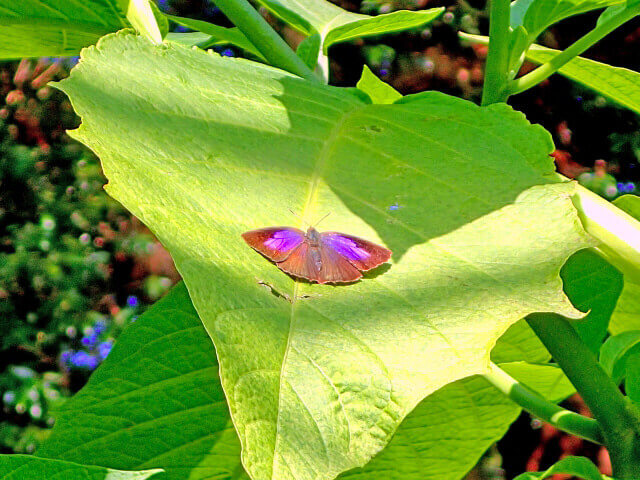 単独で葉上で羽を広げていたり、飛んでいるものもいました。