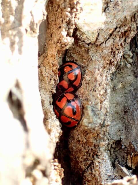 エノキの木の隙間にカメノコテントウの姿を見つけました。