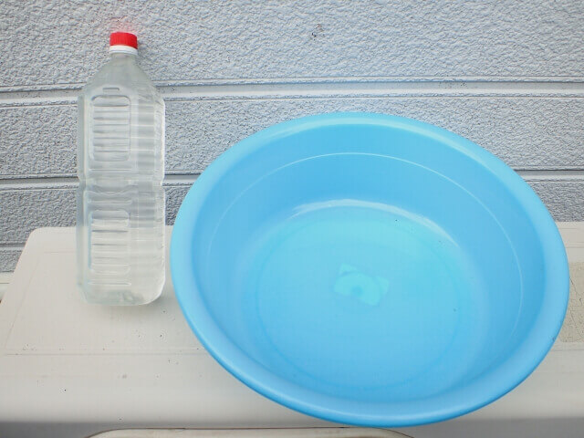 ②マットを一度全部たらいなどに出し、水を加えてまんべんなく水分を混ぜ込んでやる。