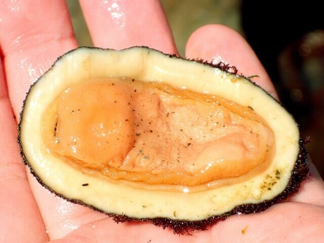 サザエは漁業権などに引っ掛かってしまい採ることは出来ませんが、昔一度この辺りを管轄する漁業組合に確認を取った際、この貝(スガイ)は大丈夫だと言われました。