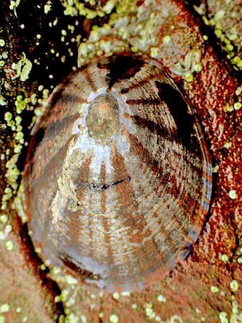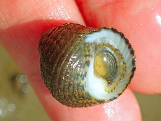 この辺りの海で最も見られる貝の一つ、イシダダミガイです。