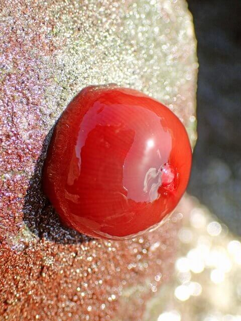 岩をひっくり返すと、現れたのは色鮮やかな真っ赤な梅干し!