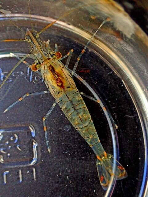 本家のスジエビとは違い身体の縞模様線が薄め少なく付いています。