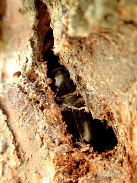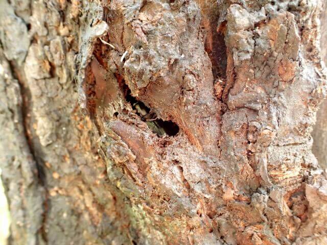 今の時期はこういうウロや樹皮裏を中心に探していきます。