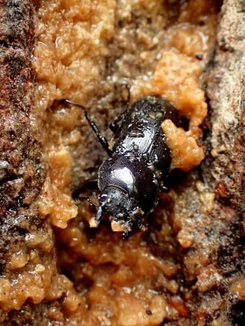こちらのハルニレの樹液だまりに黒いものが付いていました。