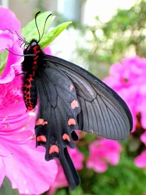 ボディには毒々しい赤の模様を持つアゲハチョウですが、とても美しい蝶です。