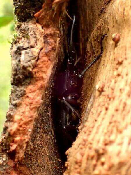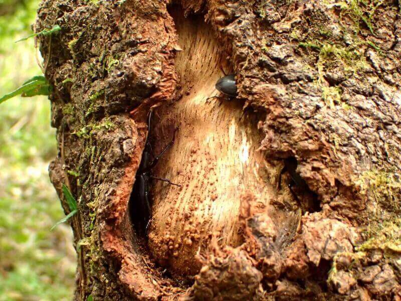 上記で取り上げた5種類のクワガタ達のほとんどが樹皮裏やウロ(洞)を住処にしておりますので、木を蹴る蹴り採集ではなく、樹皮裏やウロを覗き込んで探す採集方法で探していきます。