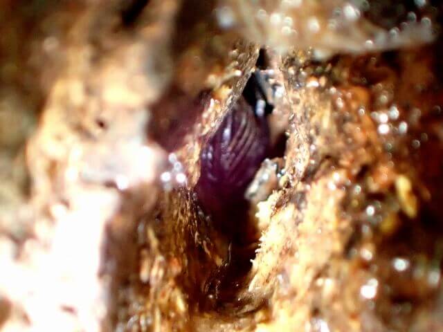 こちらのハルニレのすっごく狭い樹皮穴?の奥に、