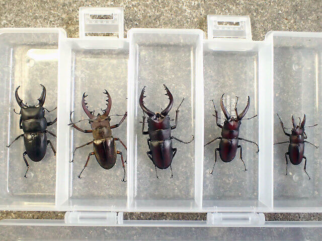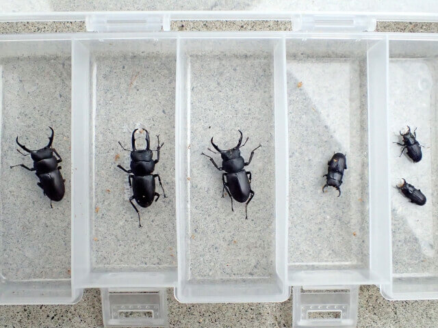 あと一般的に見られるものとしてはクワガタではありませんが、カブトムシ、そしてカナブン達がありますね。