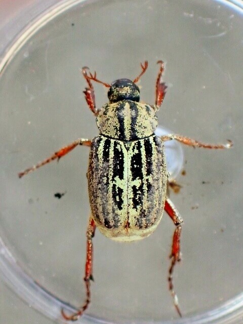 小さいコガネムシですが縞模様のキレイな色合いをしています。