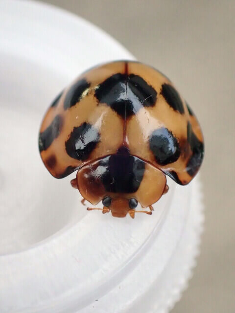 とても大きく、ナナホシテントウナミテントウの大きさ(約6~7㎜)で見慣れている私にはちょっとビックリの大きさです。