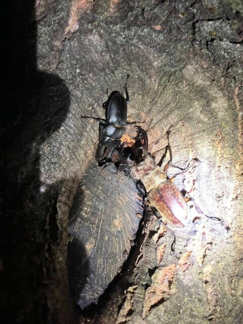 樹液に来ていたミヤマクワガタ♂とコクワガタ♂を見つけたとのこと!